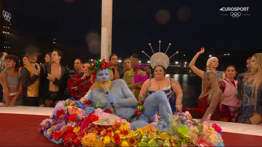 Fot. Eurosport / YouTubeBluźnierstwem przebranym w domaganie się praw nazwało Międzynarodowe Stowarzyszenie Egzorcystów „przyprawiającą o mdłości parodię” Ostatniej Wieczerzy z ceremonii otwarcia igrzysk olimpijskich w Paryżu.