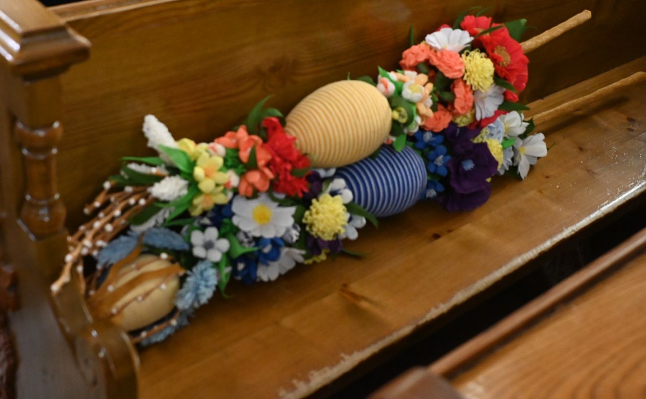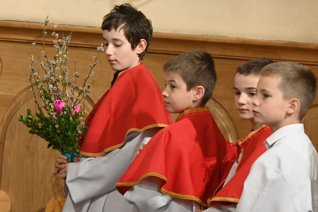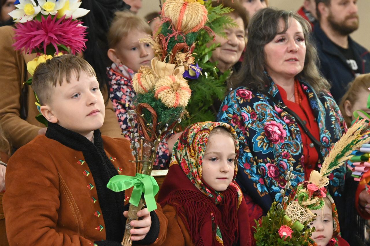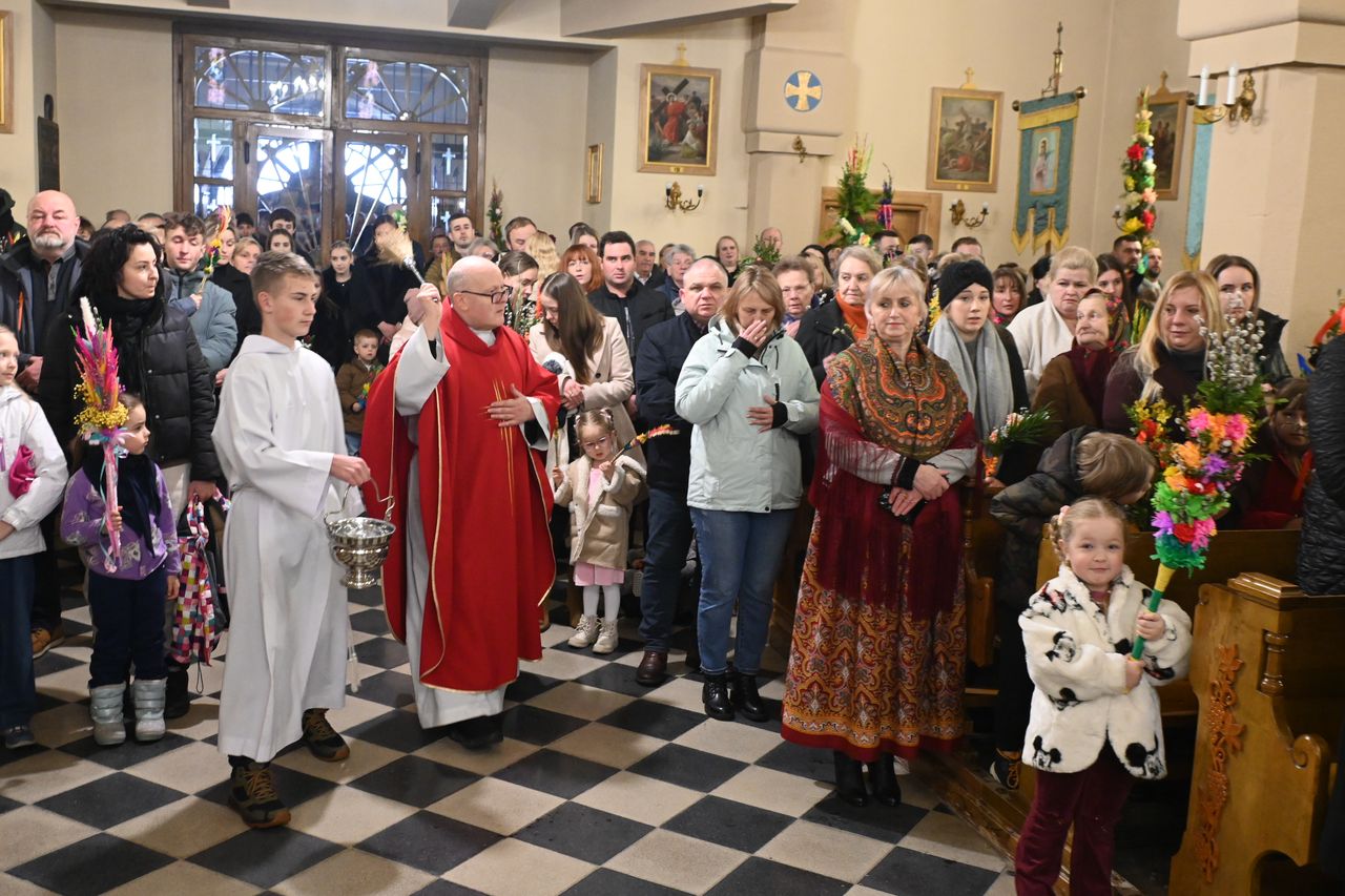 Ze świątyni nikt nie wyszedł z pustymi rękoma, każdy mógł poczęstować się czekoladowymi jajeczkami. Wiele osób w Niedzielę Palmową do kościoła przyszło w strojach regionalnych.