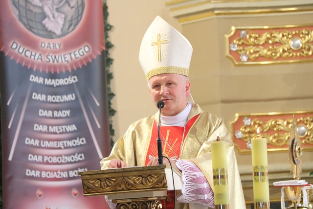 Spośród siedmiu darów Ducha Świętego wymienił dar umiejętności. – To jest bardzo ważny dar, dzięki któremu możemy dobrze rozeznawać, odrzucać to, co jest złe, a wybierać to, co jest dobre. Kiedy zdarza nam się iść w złą stronę to Duch Święty wewnętrznie nas niepokoi, abyśmy nawrócili się i otworzyli na łaskę Bożą – mówił kaznodzieja.