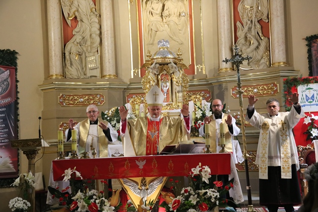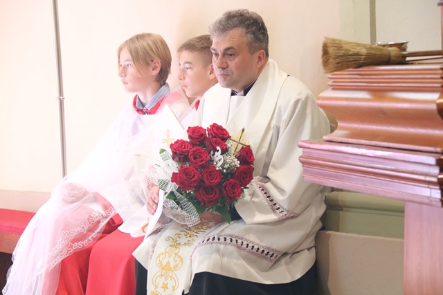 Uroczystość była też okazją do złożenia życzeń proboszczowi ks. kan. Krzysztofowi Ordziniakowi, który dzisiaj świętował 30. rocznicę święceń kapłańskich. Z tej okazji jako wotum wdzięczności duchowny ufundował nowy sztandar Żywego Różańca, który poświęcił bp Łukasz Buzun.