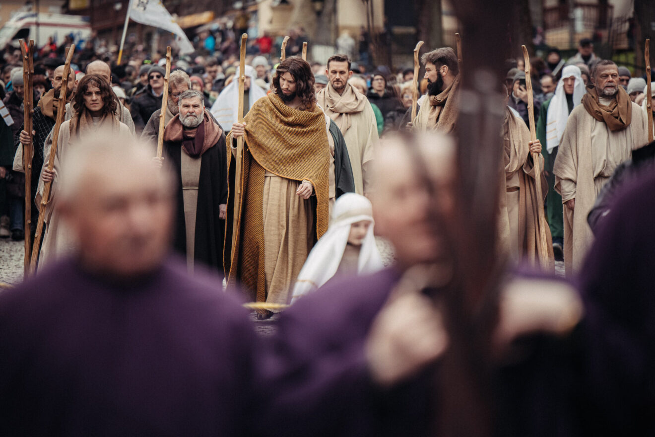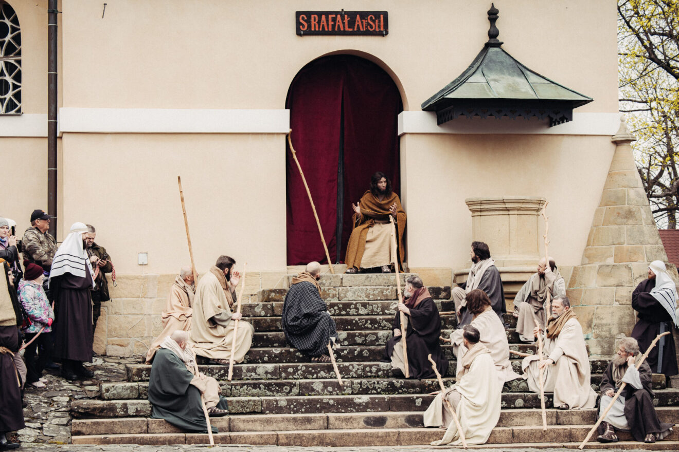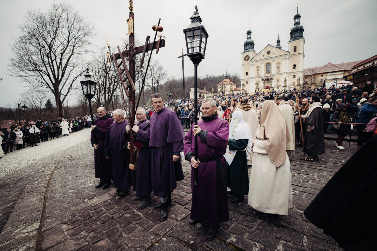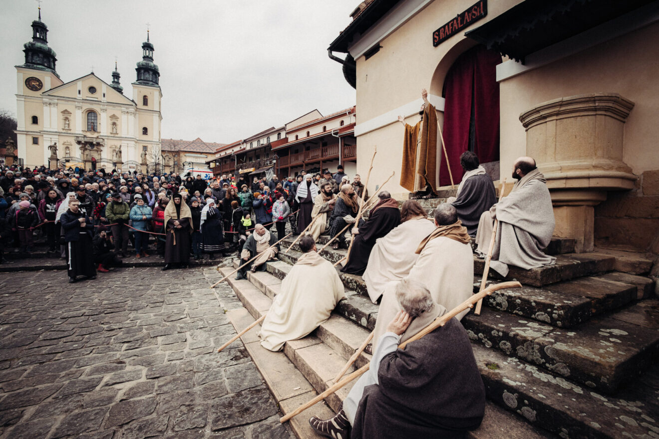 Fot. Piotr TumidajskiW Kalwarii Zebrzydowskiej od wieków w szczególny sposób obchodzony jest Wielki Tydzień. Alumni bernardyńskiego seminarium oraz osoby świeckie odgrywają sceny biblijne. Tradycja misteriów pasyjnych w Kalwarii Zebrzydowskiej sięga czasów powstania sanktuarium na początku XVII wieku.