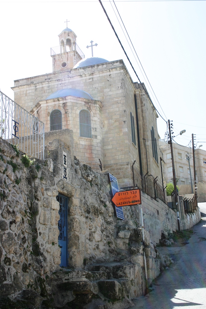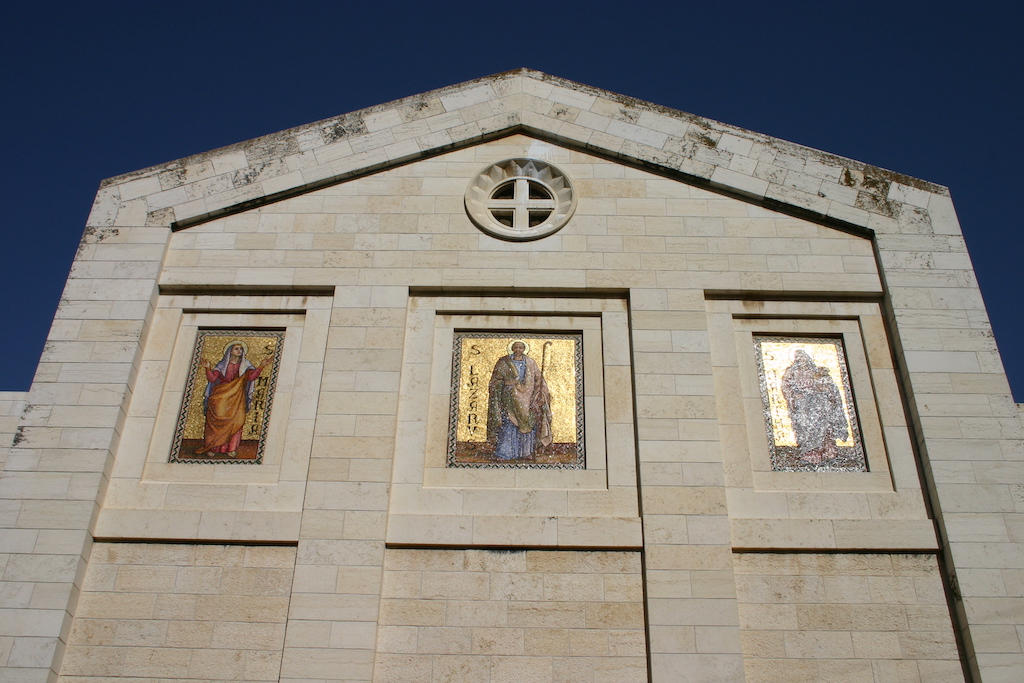 - Kolejna scena rozgrywa się w Betanii, miejscowości położonej na wschodnim stoku Góry Oliwnej, ok. 3 km. od starożytnej Jerozolimy. Współcześnie to miejsce jest identyfikowane z arabską miejscowością Al-Ajzarijja, której nazwę na język polski można by tłumaczyć jako „Łazarzowo”, gdyż tradycja właśnie tam lokuje dom Marty, Marii i Łazarza oraz cud wskrzeszenia Łazarza.