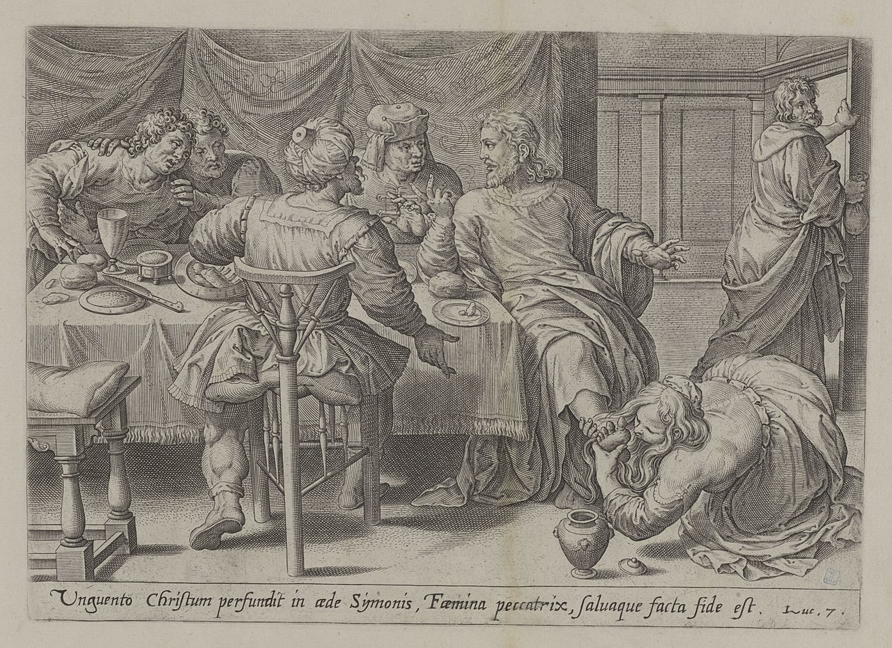 - Główną bohaterką stała się nieznana z imienia kobieta (w Ewangelii wg św. Jana identyfikowana z Marią, siostrą Łazarza i Marty – por. J 12, 3), która przyszła do Jezusa i wylała na Jego głowę cały flakonik drogocennego olejku nardowego. W tamtych czasach zwyczajem było namaszczanie stóp, a niekiedy także i głowy, gościom odwiedzającym dom. Tutaj niezawodnie intencją niewiasty było okazanie wielkiego szacunku i wdzięczności, być może za coś, co Jezus uczynił dla niej lub dla jej rodziny. Wartość olejku, jak na tamte czasy, była ogromna: wynosiła praktycznie całe pensum roczne niewykwalifikowanego robotnika. Stąd też nie może dziwić samo naczynie, które było wykonane z alabastru (odmiana kalcytu), używanego również do produkcji biżuterii, pucharów, urn czy sarkofagów. Scena opisana przez św. Marka (Mk 14, 1-11) ma paralele we wszystkich pozostałych ewangeliach: Mt 26, 6-13; Łk 7, 36-50; J 12, 1-8. Mateusz i Marek piszą o wylaniu olejku na głowę Jezusa, zaś Łukasz i Jan mówią o namaszczeniu stóp Jezusa.