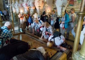 Kamień namaszczenia w Bazylice Grobu Bożego. Fot. Wanda Gotkiewicz