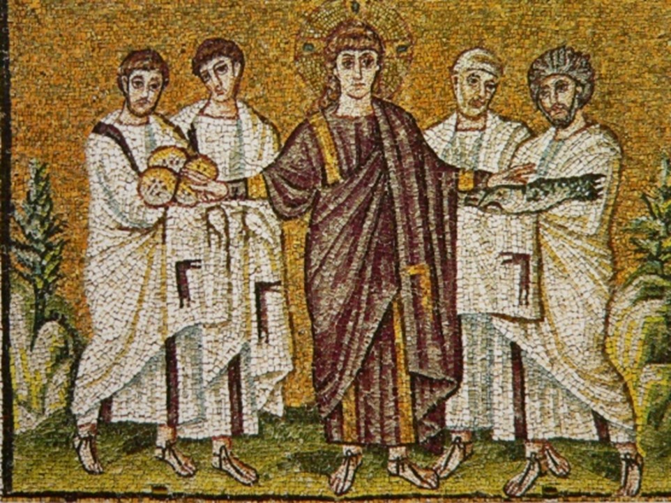 Na głoszonym słowie nie wyczerpuje się jednak działalność Jezusa, lecz otwiera się na egzystencjalne potrzeby ludzi. Tym razem to uczniowie interweniują zauważając późną porę i konieczność odesłania ludzi dla posilenia się we własnym zakresie (Mk 6,35). W tej diagnozie ujawnia się ich pragmatyzm myślenia, ale też tendencja zaradzenia zaistniałej sytuacji według ludzkich i racjonalnych kryteriów. Ze zdziwieniem przyjmują zalecenie Jezusa: „Wy dajcie im jeść” (Mk 6,37), podając przy tym szacunkową cenę dwustu denarów dla zakupu pożywienia dla tak licznie zgromadzonych. Św. Jan zaznacza, że taka suma z pewnością nie wystarczyłaby, by nakarmić taką rzeszę (J 6,6). W tym miejscu Jezus, jak prawdziwy gospodarz na uczcie, przejmuje inicjatywę upewniwszy się wpierw, że uczniowie dysponują jedynie pięcioma chlebami i dwiema rybami. Nakazuje ludziom usiąść na trawie gromadami po stu i pięćdziesięciu (Mk 6,39-40), aby ułatwić rozdawanie pożywienia. Św. Marek przytacza gesty Jezusa, które w kontekście całej Ewangelii nabierają charakteru sakramentalnego, z wyraźnym odniesieniem do ustanowienia Eucharystii: „wziąwszy pięć chlebów i dwie ryby, spojrzał w niebo, odmówił błogosławieństwo, połamał chleby i dawał uczniom” (Mk 6,41; por. 14,22-23). Tym razem uczniowie mają czynny udział w podaniu ludziom, którzy wszyscy spożywają do syta, aby następnie zebrać, zgodnie ze zwyczajem żydowskim, pozostałe ułomki i resztki z ryb do dwunastu pełnych koszów (Mk 6,41b-43). Przytoczona dodatkowo liczba pięciu tysięcy mężczyzn (Mk 6,44), jednoznacznie podkreśla cudowny charakter pomnożenia pożywienia podanego w tak niewielkiej ilości.