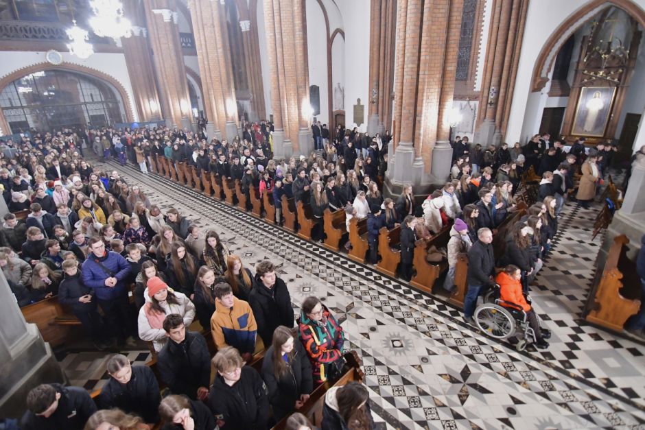 fot. Robert Ostrowski / archidiecezja białostockaW przeddzień uroczystości Matki Bożej Miłosierdzia archikatedra białostocka wypełniła się młodymi ludźmi, którzy wraz ze swoimi duszpasterzami i katechetami przybyli na modlitewne wydarzenie zwane „Dniem u Mamy”.