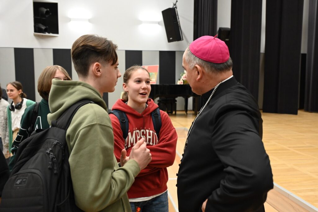 W dyskusję z młodymi wszedł bp Krzysztof Włodarczyk, który nawiązał do Psalmu 139 i słów „Ty utkałeś mnie w łonie mej matki”. – To ukazanie Pana Boga jako artysty. Kogoś, kto stwarza nas nie hurtowo, na matrycy. To artysta, który wkłada w tworzone dzieło siebie. Więc jestem kimś jedynym i niepowtarzalnym – mówił, zatrzymując się na takich pojęciach, jak rozum, serce, wolność i miłość. – Ja potrafię kochać i to mnie rozwija. Chcę być kochany bezwarunkowo i za darmo. Nieraz szukamy kogoś daleko od siebie, zachwycamy się celebrytami, którym na nas nie zależy. Jeśli coś w życiu nas nurtuje, pytajmy siebie nawzajem, naszych najbliższych – powiedział.