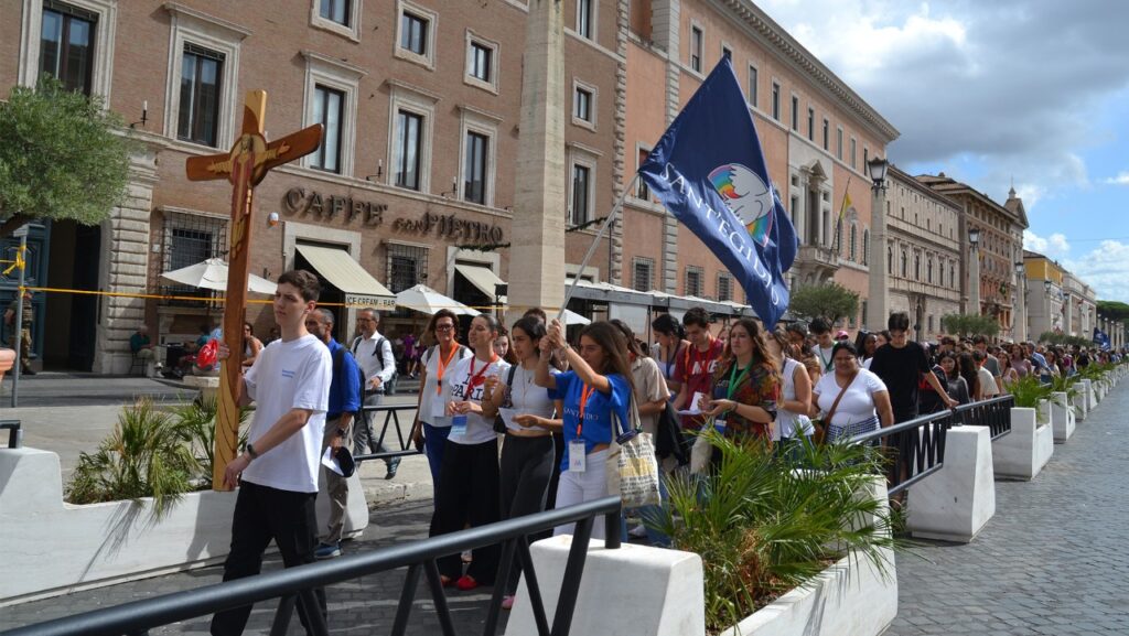 W sobotę 30 sierpnia, ponad 1200 studentów i uczniów szkół średnich z 12 krajów europejskich, w tym przedstawiciele Afryki, Ameryki Łacińskiej i Azji, a także liczna delegacja młodzieży z doświadczonej wojną Ukrainy, przeszło Via della Conciliazione niosąc drewniany krzyż Roku Świętego, modląc się, śpiewając i wołając o pokój dla wszystkich narodów. Jak radośnie powtarzali od początku swojego międzynarodowego spotkania Global Friendship Peace Hope, które rozpoczęło się w Rzymie 28 sierpnia i zakończyła się w sobotę wieczorem celebracją eucharystyczną w bazylice Santa Maria in Trastevere, a następnie festynem na rzecz pokoju.