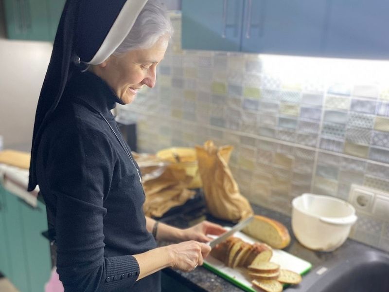 W klasztorze w Żytomierzu posługują trzy zakonnice. Od 8 lat, tak jak wszyscy obywatele kraju, żyły w poczuciu zagrożenia wojną, a gdy Rosja napadła na Ukrainę, stanęły wobec potrzeby realizowania konkretnych zadań. Świetlica Caritas-Spes, w której pracują nazaretanki, jest obecnie zamknięta, więc zakonnice całymi dniami robią kanapki dla cywilnych obrońców miasta.