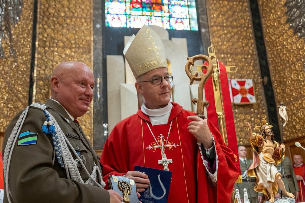Nawiązując do uroczystości kanonizacyjnych bp. Stanisława, ordynariusz wojskowy przypomniał, że papież Innocenty IV określił świętego „wzorem dla kolejnych pokoleń Polaków”. Przywołał też, że rozczłonkowane ciało Męczennika było symbolem podziału Polski, ale równocześnie nadziei na jej scalenie. – Stanisław stał się patronem idei zjednoczenia Polaków i Polski, a więc nie tylko okazał się być przewodnikiem, ale również wzorem. Z jego ofiary rodziła się nadzieja dla kolejnych walczących o wolność i niepodległość naszej ojczyzny pokoleń. Również kimś takim powinien być dowódca wojskowy, powinien swoją osobą dawać przykład, działając ku pokrzepieniu serc – powiedział bp Lechowicz.