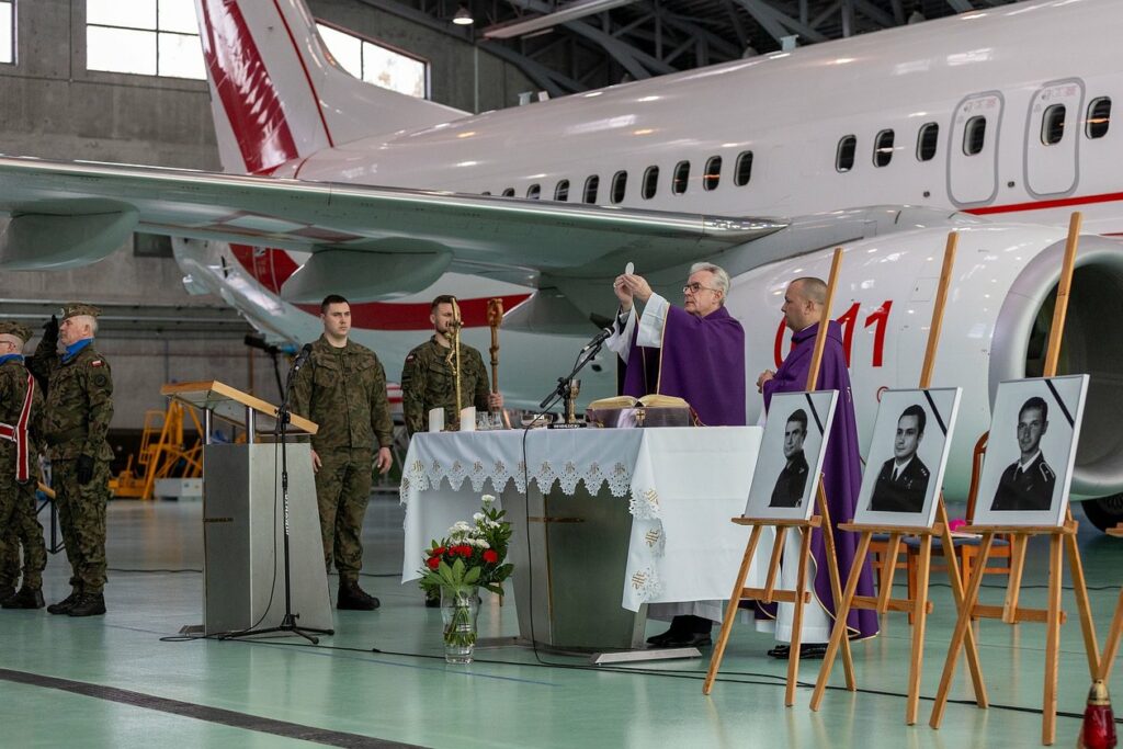 We Mszy św. uczestniczyły rodziny tragicznie zmarłych członków załogi samolotu. Obecni byli także gen. dyw. pil. Ireneusz Nowak, inspektor Sił Powietrznych Dowództwa Generalnego, żołnierze i pracownicy 1. Bazy Lotnictwa Transportowego z dowódcą, gen. bryg. pil. Pawłem Bigosem, który podziękował biskupowi polowemu za sprawowaną Eucharystię.