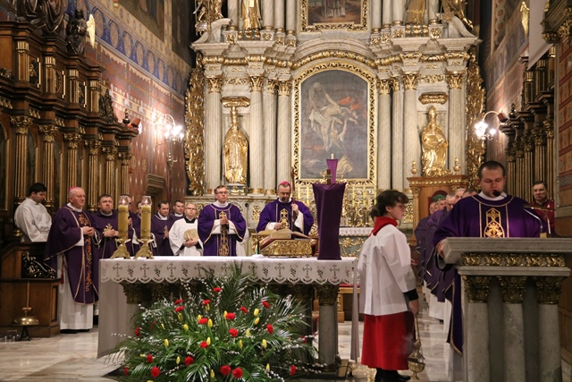 Mszę św. wraz z biskupem kaliskim Damianem Brylem koncelebrowali: biskup pomocniczy diecezji kaliskiej Łukasz Buzun, proboszcz katedry ks. prał. Adam Modliński, kapłani z Kapituły Katedralnej, proboszczowie kaliskich parafii i kapłani pracujący w instytucjach centralnych diecezji kaliskiej.