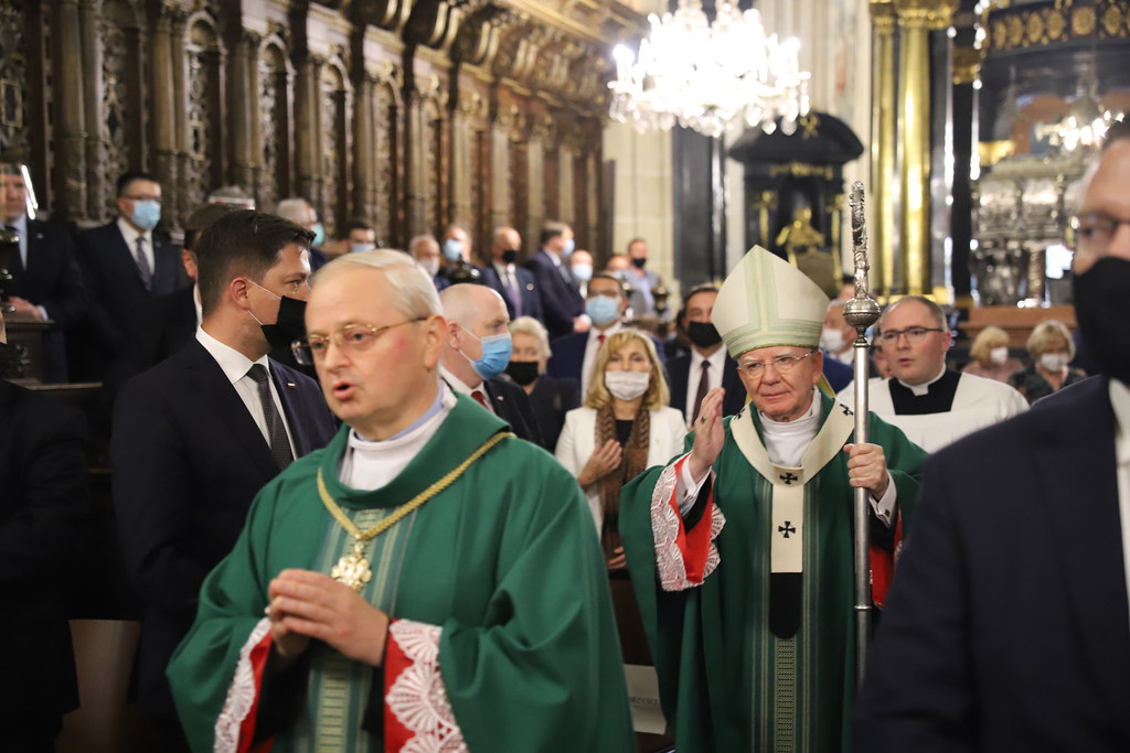 Po zakończeniu Mszy św. abp Marek Jędraszewski modlił się przy sarkofagu pary prezydenckiej – śp. Marii i Lecha Kaczyńskich.