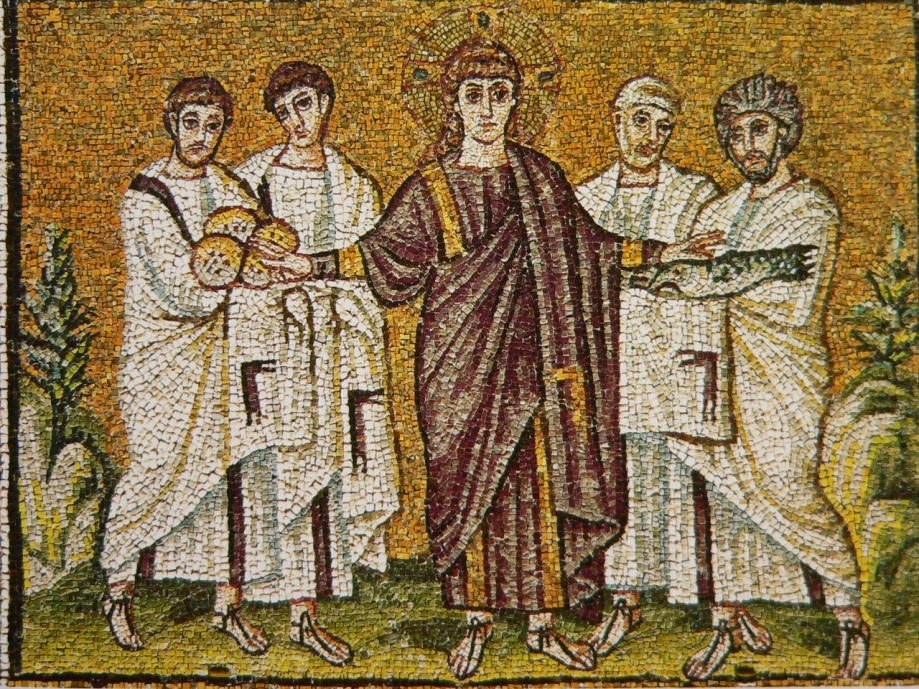 Jednym z najstarszych przedstawień ikonograficznych sceny rozmnożenia chleba jest mozaika w Bazylice Sant’Apollinare Nuovo w Rawennie: