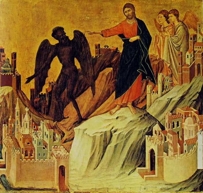 „«Idź precz, szatanie» (Mt 4,10). Stanowcza postawa Mesjasza jest dla nas przykładem i zachętą do odważnego i zdecydowanego naśladowania Go. Szatan, «władca tego świata» (J 12,31), działa podstępnie także i dziś. Każdy człowiek, prócz własnej pożądliwości i złego wpływu innych, doświadcza również pokus ze strony szatana – tym większych, im mniej zdaje sobie z tego sprawę. Ileż razy lekkomyślnie ulega zwodniczym podszeptom ciała i zła, a później doznaje gorzkiego rozczarowania! Trzeba zachować czujność, by szybko zareagować na każdy atak pokusy” (Jan Paweł II, Walka z szatanem, Rozważanie przed modlitwą «Anioł Pański», 17 lutego 2002, OssRomPol 4/2002).