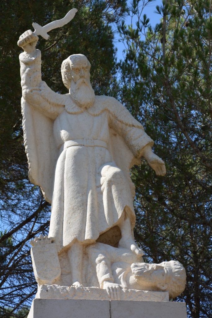 „Strzeżcie się fałszywych proroków” (Mt 7,15). Figura proroka Eliasza pokonującego proroków Baala (por. 1Krl 18,20-40). Góra Karmel (Muhraka). (fot. Ewa Matraszek)