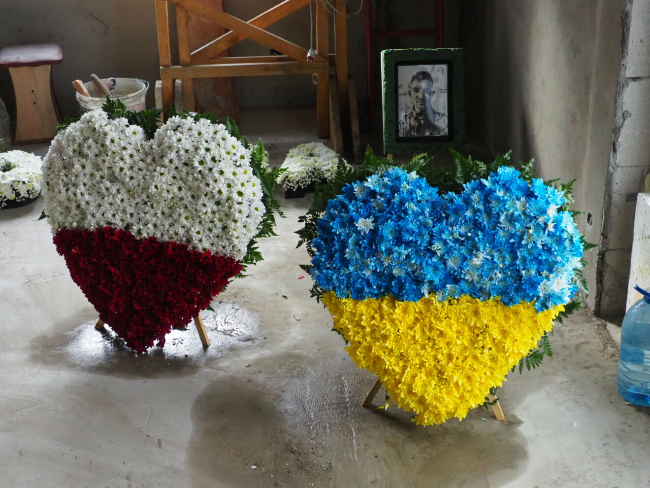 Wieczór 6 września 2023 r., w Usiczach, w domu, gdzie wychował się Bogdan, z jego mamą, siostrą, przyjaciółmi z Polski przy kolacji trwają długie rozmowy. Krzątanie się w kuchni, układanie wielkich kwietnych serc w barwach Ukrainy i Polski. Mama Bogdana pokazuje zdjęcia, opowiada.