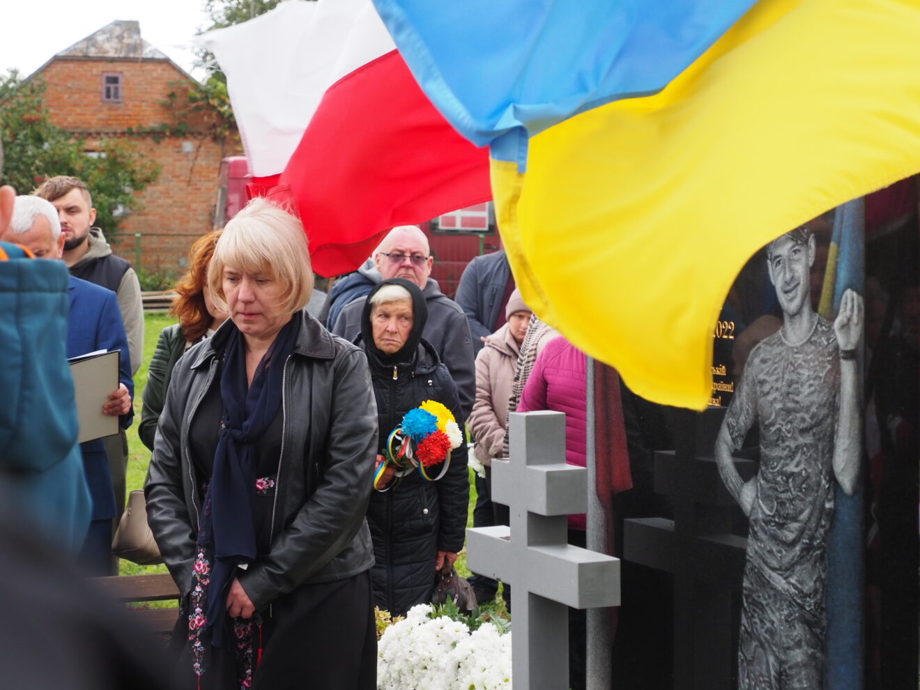 Fot. Dawid Gospodarek / KAIDziś w Usiczach na Wołyniu, na grobie poległego ukraińskiego żołnierza Bogdana Szczerbka, odsłonięto pomnik ufundowany przez Polaków. Widniejące na nim flagi polska i ukraińska – krajów bliskich sercu młodego bohatera – stają się zwłaszcza tu ważnym znakiem nadziei na wspólne budowanie przyszłości.