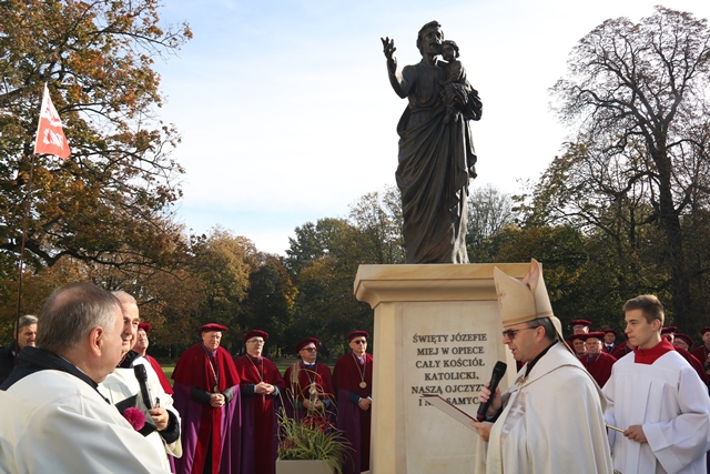 Przed wejściem do Ogrodu stoi wykonana z brązu figura św. Józefa. – Św. Józef jedną ręką wskazuje na bazylikę i zachęca do wejścia, w drugiej przytula Pana Jezusa, jako opiekun – mówił kustosz sanktuarium.