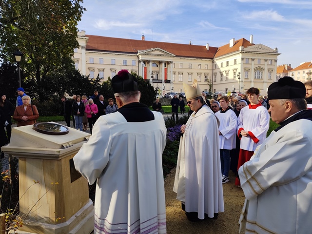 Uroczystość poświęcenia poprzedziła Msza św. pod przewodnictwem biskupa kaliskiego Damiana Bryla, który w homilii pogratulował ks. prał. Jackowi Plocie inicjatywy i podziękował osobom, dzięki którym powstał Ogród Świętego Józefa. – Niech to miejsce daje nam doświadczenie pokoju, harmonii, spotkania z przyrodą, ale przede wszystkim niech będzie spotkaniem ze św. Józefem, który chce być nie tylko naszym orędownikiem i nie tylko wstawia się za nami przed Bożym majestatem, ale chce nas wprowadzać w sposób Bożego życia. Podejmijmy proszę to zaproszenie – zaakcentował celebrans.
