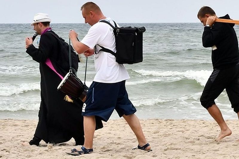 Fot. Parafia pw. Wniebowzięcia Najświętszej Maryi Panny w Sarbinowie/FacebookJak niemal co roku, z wyjątkiem lat pandemii, w diecezji koszalińsko-kołobrzeskiej organizowana jest Ewangelizacja Nadmorska. Grupa kilku osób, kapłan, siostry zakonne i osoby świeckie, idąc brzegiem plaż, głoszą Słowo Boże, rozmawiają z napotkanymi osobami, zachęcają do wspólnej modlitwy. Pierwsza tura ewangelizacji odbyła się na początku lipca, wkrótce rozpocznie się część druga.