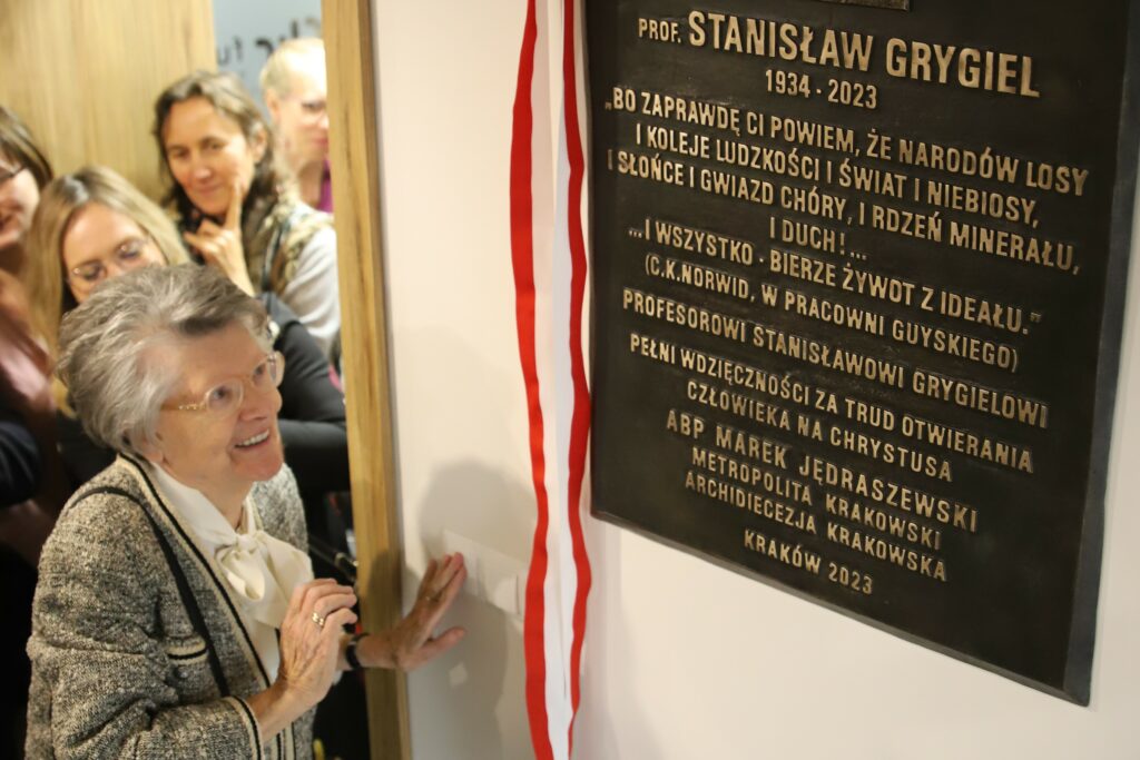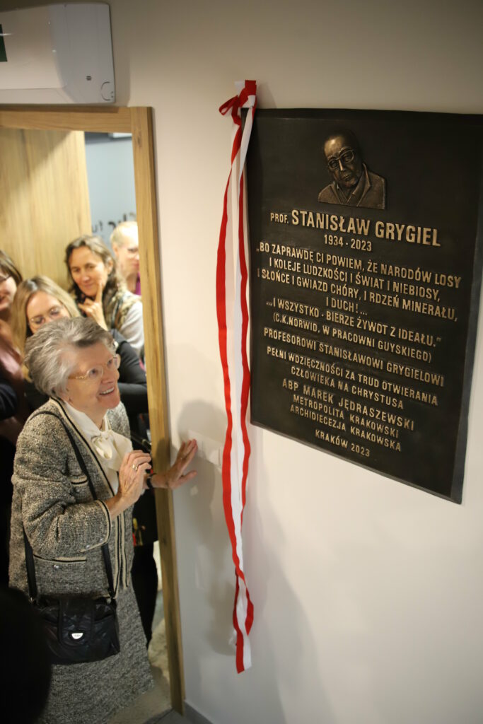 Po Mszy św. metropolita krakowski poświęcił pamiątkową tablicę prof. Stanisława Grygiela znajdującą się w siedzibie Fundacji przy ul. Św. Siostry Faustyny 70 w Krakowie.