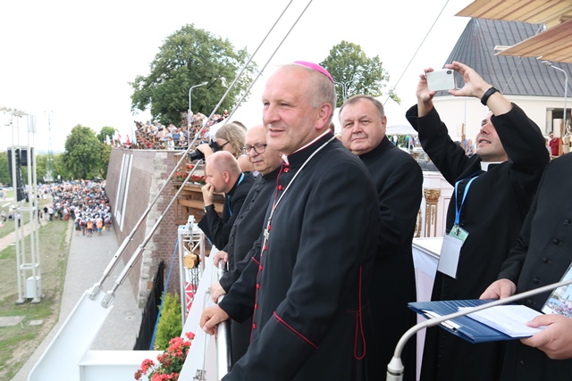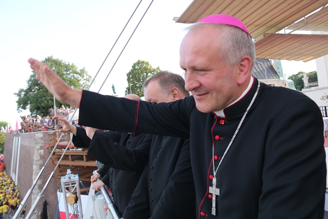 Podkreślał, że każda pielgrzymka owocuje radością, a przede wszystkim ubogaca wnętrze człowieka. – Każdy z nas kiedy jest na Jasnej Górze to czuje radość, która jest wypracowana przez trud pielgrzymi. W drodze pielgrzymi otwierają swoje serca i umysły na Pana Boga, bo jest wspólnota modlitewna, Eucharystia, Słowo Boże. Pątnicy otwierają się także na drugiego człowieka. Poprzez pielgrzymkę człowiek porządkuje swoje wnętrze, a owocem tego jest radość – stwierdził hierarcha.
