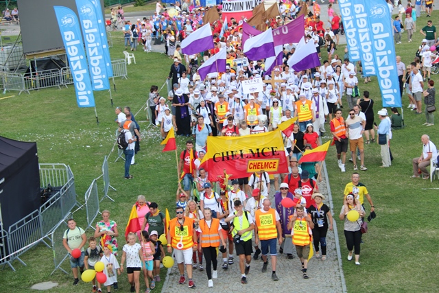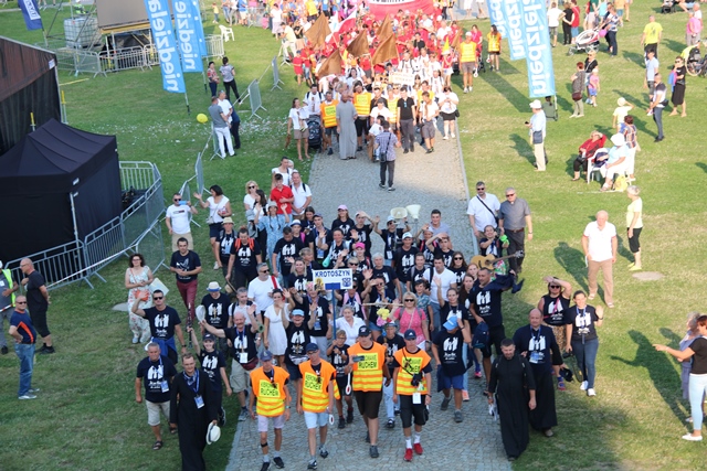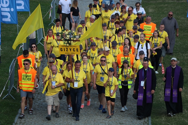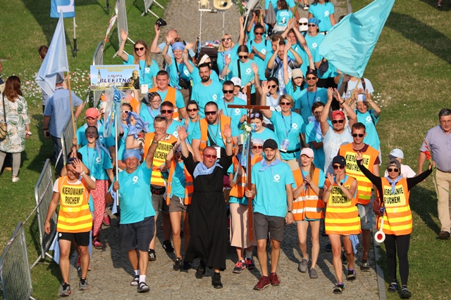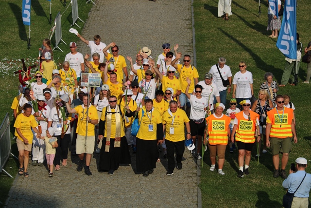 Fot. Ewa Kotowska-Rasiak/KAI1293 pielgrzymów 384. Kaliskiej Pieszej Pielgrzymki i 30. Diecezji Kaliskiej weszło 13 sierpnia na Jasną Górę. Do pątników dołączyły dwie grupy rowerowe w liczbie 100 pielgrzymów i grupa biegowa ministrantów skupiająca 20 osób. W pielgrzymowanie włączyło się także 125 pielgrzymów duchowych. Jako pierwsza na Jasną Górę weszła grupa żółta z Giżyc. Kaliskich pątników witał biskup pomocniczy diecezji kaliskiej Łukasz Buzun.