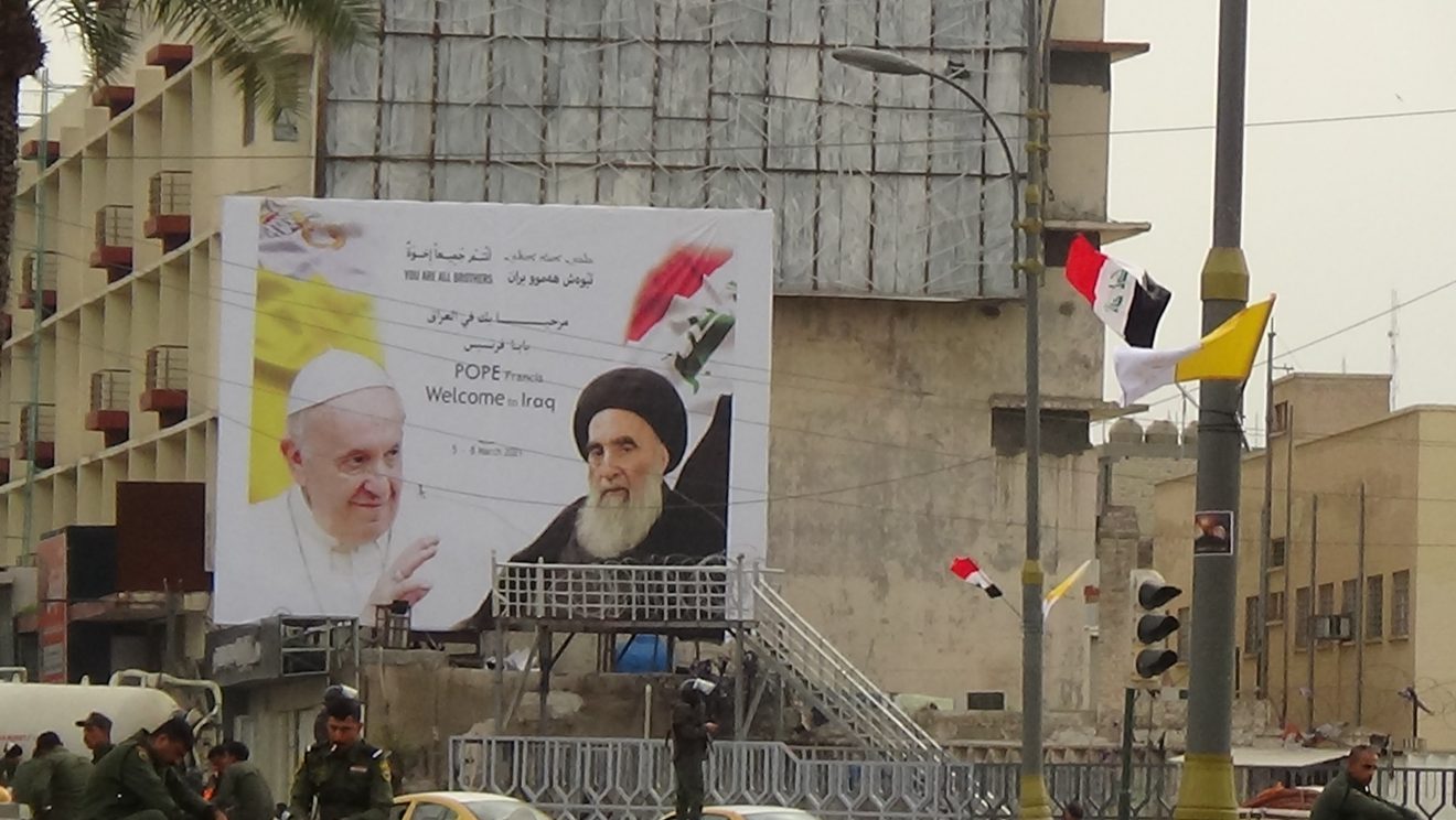 Na historycznej ulicy ar-Raszid, jak zwykle od świtu do wczesnych godzin popołudniowych panował ogłuszający gwar targowy. Tłumy ludzi robiły zakupy jak co dzień, sprzedawcy zachwalali swoje towary przez głośniki, walcząc z wszechobecnym hukiem samochodowych klaksonów. W tej części Bagdadu flag papieskich nie było, choć i w tym rejonie są kościoły, w tym dawna katedra św. Józefa, która w czasie II wojny światowej została odnowiona przez żołnierzy Andersa i później służyła przez kilka lat jako polski kościół garnizonowy. W okolicy można było natomiast zobaczyć szyickie proporce z imamem Husajnem. Kilka dni po pielgrzymce papieża w szyickim kalendarzu wypada święto Musy al.-Kadhimiego, jednego z szyickich imamów z VIII w., pochowanego w okazałym mauzoleum w Bagdadzie, od jego imienia nazywanego Kadhimiją. Już w ostatnich dniach na ulicach Bagdadu można było zobaczyć pojedynczych szyitów wędrujących z flagami szyickimi do tego miejsca. Ale to nie oznacza, że mieszkańcy tej części Bagdadu są obojętni wobec pielgrzymki Ojca Świętego. „Papież jest posłańcem pokoju miedzy ludami, narodami, między chrześcijanami i muzułmanami. Dlatego jest tu mile widziany, witamy” – mówi jeden z przechodniów, a otaczający go ludzie potakują.