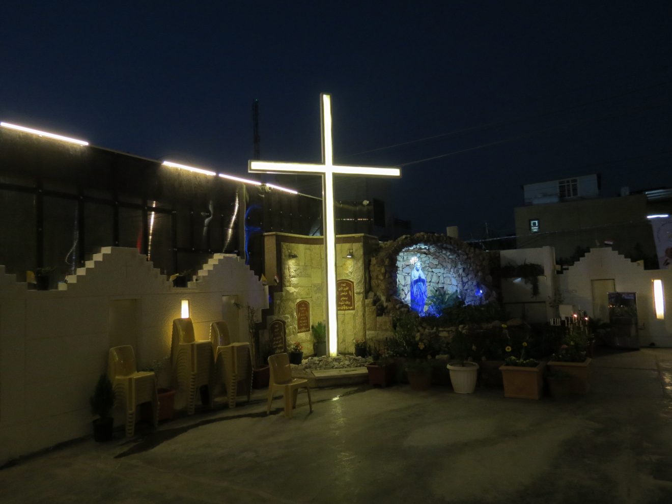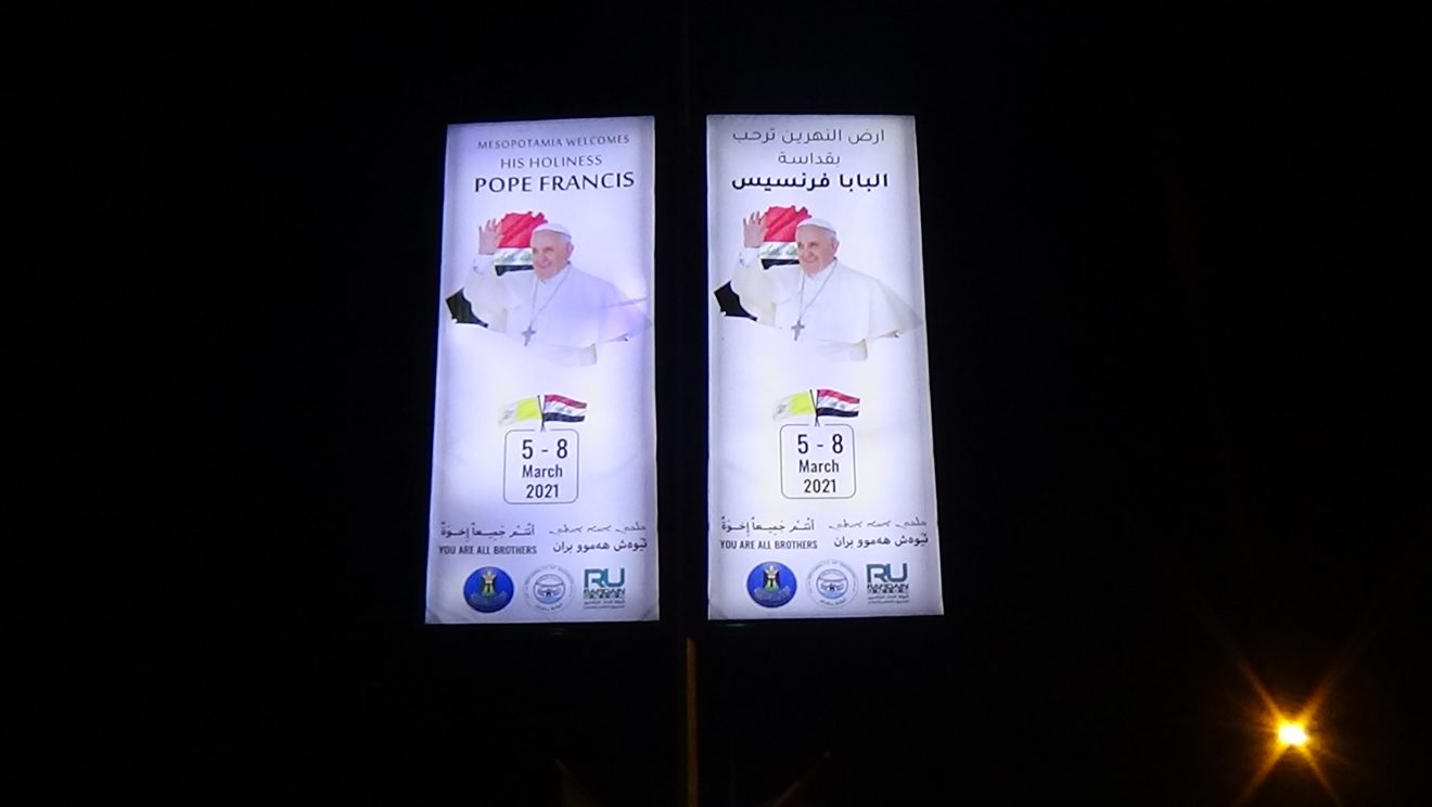 Zupełnie inny nastrój panował w tej części irackiej stolicy, którą odwiedzi Ojciec Święty. Na centralnej ulicy Sadoun do ostatniej chwili trwały prace porządkowe. Późnym wieczorem w rejonie kościoła Sajedat al-Nedżat klomby między pasami ruchu zostały podświetlone a cała ulica została przystrojona nie tylko flagami Watykanu ale również wizerunkami Franciszka. W głębi widoczny był również rozjaśniony, charakterystyczny, osłonięty łukiem krzyż kościoła Sajedat al-Nedżat.