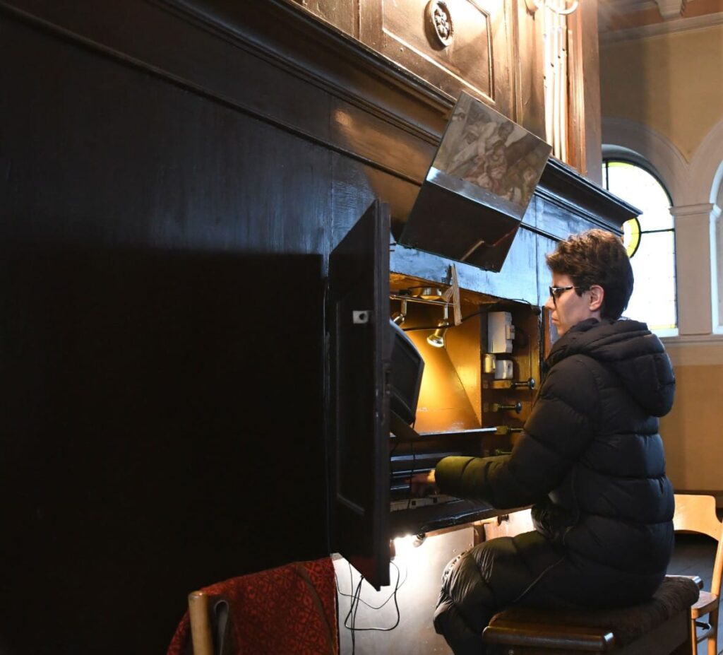 Fot. Diecezja BydgoskaW Wielki Poniedziałek, 30 marca, w parafii świętego Wawrzyńca w Nakle nad Notecią odbył się niezwykły koncert w ciemności, który wprowadził uczestników w głębokie przeżywanie Wielkiego Tygodnia. Gościem wydarzenia była Maria Ruszecka, niewidoma organistka i utalentowana wokalistka, która swoją muzyką, wrażliwością oraz świadectwem poruszyła serca wszystkich obecnych.