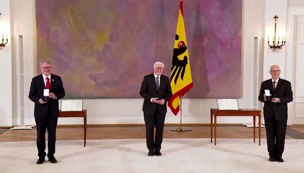 Fot. YouTube/HandelsblattZa ujawnianie przypadków wykorzystywania seksualnego dzieci i młodzieży w Kościele katolickim prezydent Frank-Walter Steinmeier odznaczył Orderem Zasługi Republiki Federalnej Niemiec Matthiasa Katscha, rzecznika stowarzyszenia ofiar „Eckiger Tisch” (Kanciasty Stół), oraz jezuitę o. Klausa Mertesa.