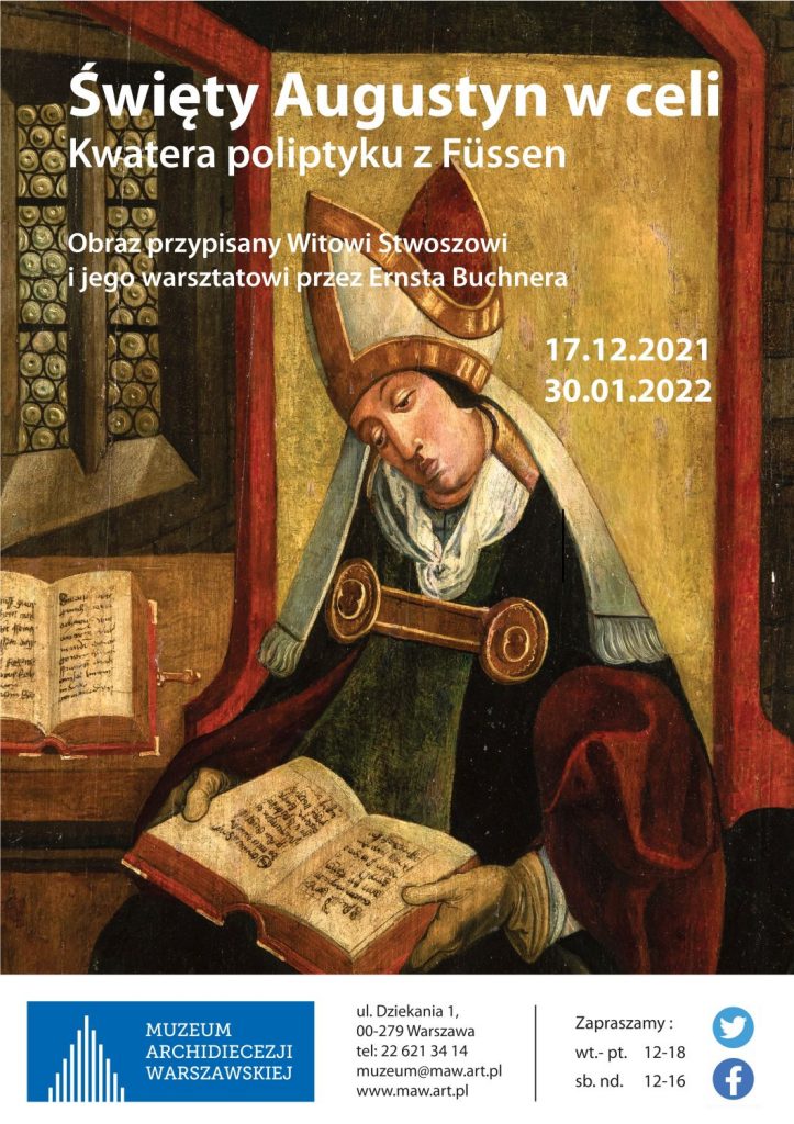Obraz Wita Stwosza przedstawiający św. Augustyna, pochodzący z ok. 1503 r., jest prezentowany publicznie po raz pierwszy w Polsce w Muzeum Archidiecezji Warszawskiej. Wit Stwosz, znany głównie jako rzeźbiarz, po powrocie do swojej Ojczyzny tworzył dzieła malarskie dla kościołów w Bawarii. – To, że możemy mieć obraz Wita Stwosza w Polsce jest wydarzeniem historycznym – powiedział właściciel obrazu antykwariusz Tomasz Jabłoński, podczas konferencji prasowej w dniu 5 stycznia br.