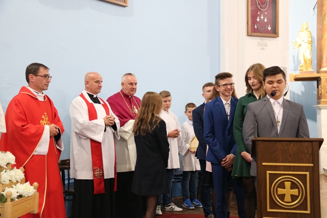Podczas Mszy św. bp Edward Janiak poświęcił odnowioną świątynię i plac przykościelny ze stacjami drogi krzyżowej. Udzielił też młodzieży sakramentu bierzmowania.