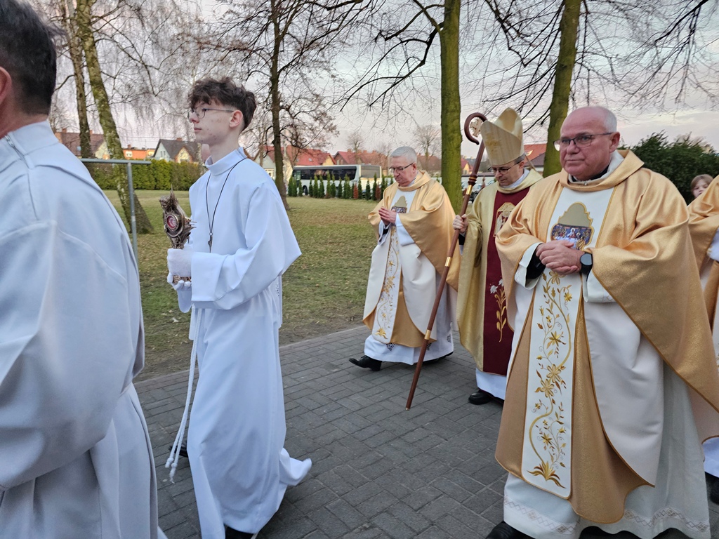 Przekonywał, że trwanie przy Jezusie Eucharystycznym przemienia serce człowieka. – Gdy doświadczam bezwarunkowego przyjęcia. Gdy doświadczam bliskości kogoś, kto mnie kocha to przemienia się moje serce. Gdy przemienia się moje serce to przemienia się moje życie, a gdy przemienia się moje życie to przemienia się życie mojej rodziny, najbliższych, moich relacji z współpracownikami. Bliskość Jezusa zawsze jest przemieniająca. Pozwólmy, żeby Jezus przez nas przemieniał oblicze tej parafii, naszej diecezji – powiedział pasterz Kościoła kaliskiego.