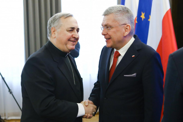 Abp Salvatore Pennacchio, przemawiający w imieniu korpusu dyplomatycznego akredytowanego w Polsce jako jego dziekan, wyraził zadowolenie, że po świętowaniu w ub. roku stulecia odzyskania niepodległości przez Polskę, w tym roku przypada stulecie nawiązania (odnowienia) relacji dyplomatycznych między Polską a Stolicą Apostolską oraz wieloma innymi państwami.