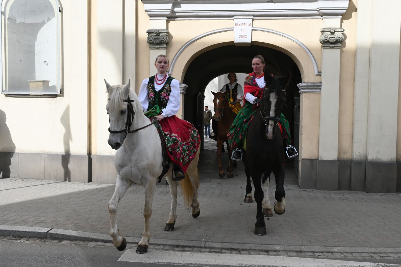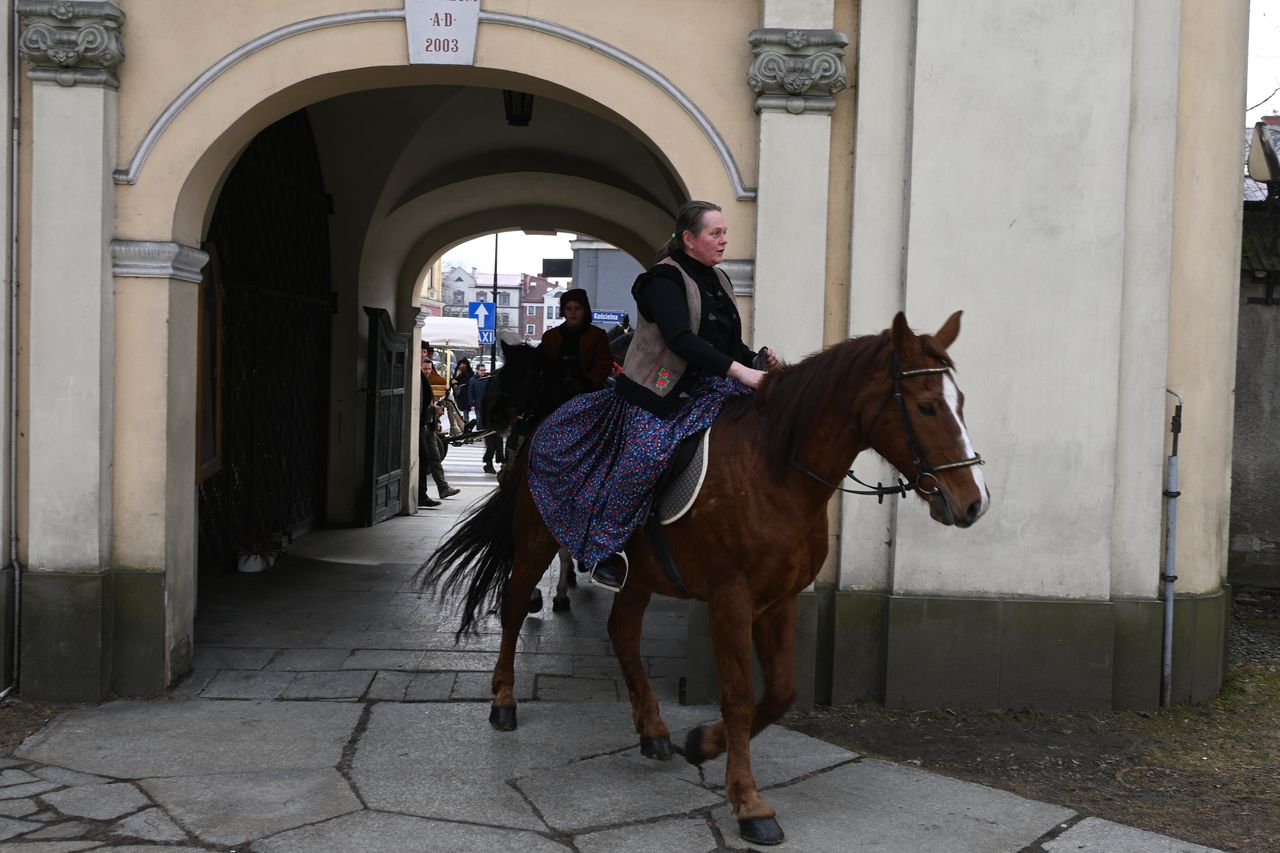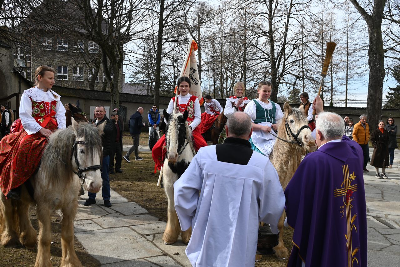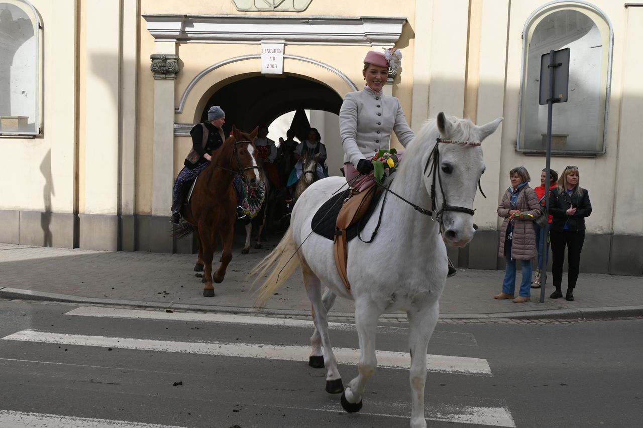 Fot. Jan GłąbińskiW Nowym Targu odbyła się dziś trzecia edycja kobiecej banderii konnej. Panie, w strojach regionalnych, przejechały przez rynek i ulice w centrum miasta, uczestniczyły też w Mszy św. w kościele św. Katarzyny. – Bardzo się cieszę, że jesteście z nami dzisiaj, że razem możemy świętować Dzień Kobiet, a wy realizujecie swoją pasję – mówił ks. Zbigniew Płachta, proboszcz parafii św. Katarzyny w Nowym Targu. Duchowny pobłogosławił też panie i konie.