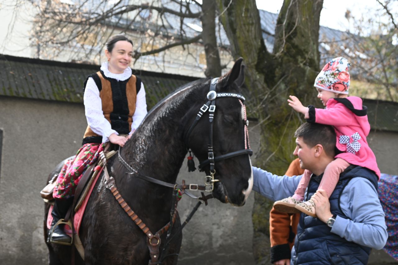 Banderię współtworzyło kilkanaście kobiet, m.in. pani Agnieszka z Zakopanego. – Jestem na koniu mojego kuzyna z Zaskala, bardzo mu dziękuję za pomoc w jego osiodłaniu. Nie mogłam sobie wymarzyć lepszego Dnia kobiet, bo konie to moja pasja od dawna. Trzeba mieć to coś w sercu dla tych zwierząt. Jestem też wdzięczna mojej córce Alicji i mężowi Konradowi, że są ze mną, cieszą się razem ze mną – mówiła pani Agnieszka. Wyraziła nadzieję, że na pewno dotrze do Nowego Targu za rok, może też na swoim koniu, o czym bardzo marzy.