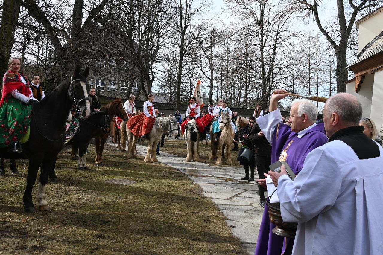 Nowy Targ: Góralki w Dzień Kobiet przyjechały konno na Mszę św.