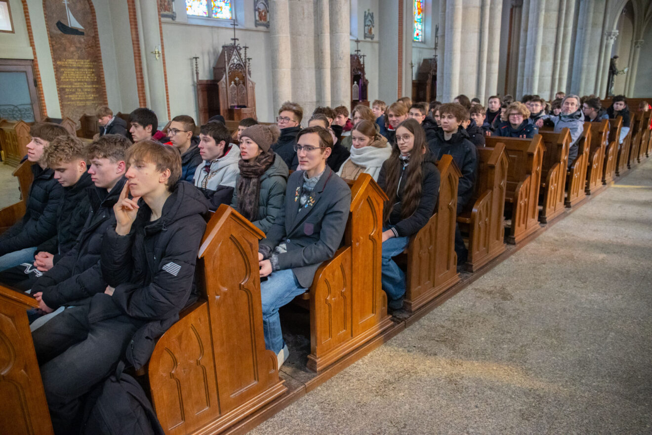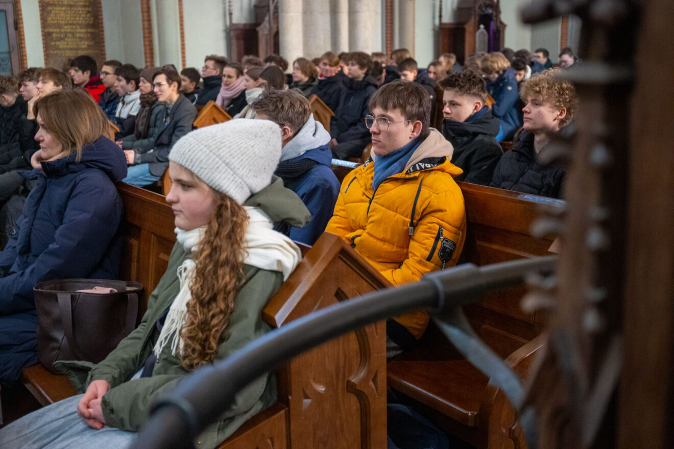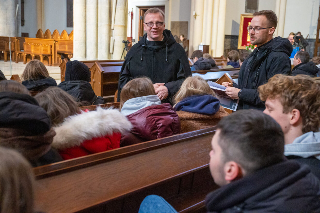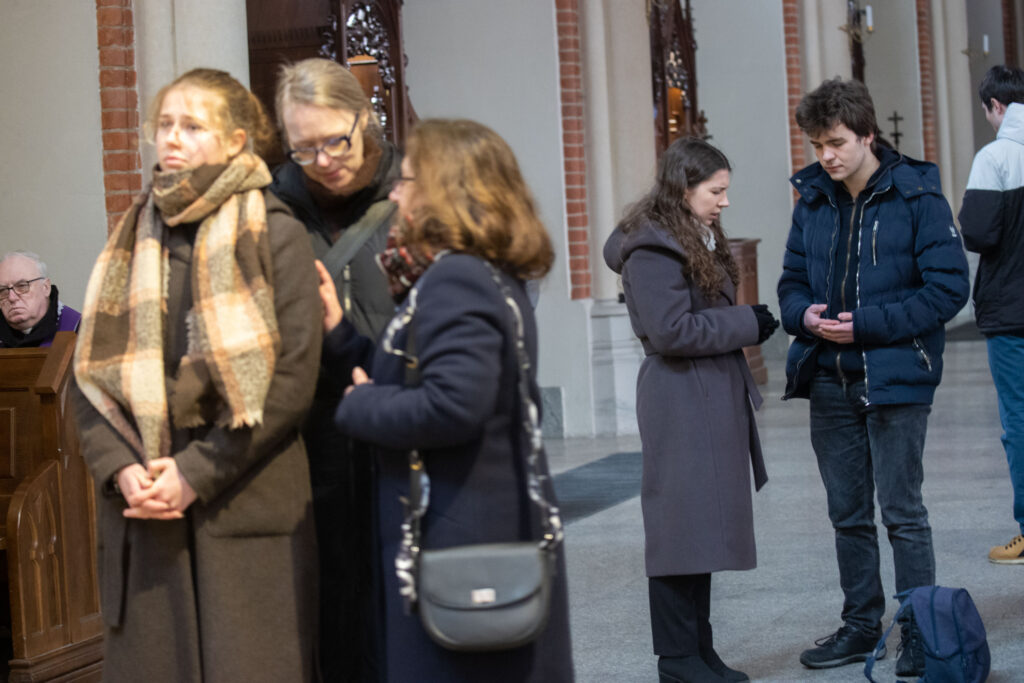 W katedrze wraz z młodzieżą ze szkół ponadpodstawowych łódzkiego Śródmieścia modlił się bp Piotr Kleszcz. Przed rozpoczęciem spotkania biskup rozmawiał z młodymi i witał się z nimi w ławkach. Hierarcha będzie również głosił Słowo Boże podczas finałowego spotkania w Atlas Arenie.