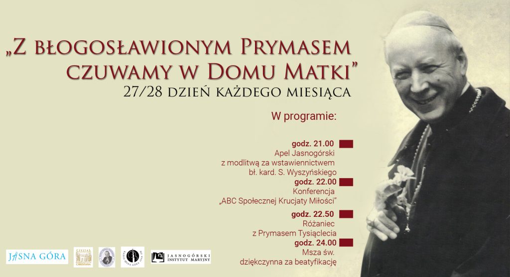O dziewiątym punkcie „ABC Społecznej Krucjaty Miłości” bł. kard. Wyszyńskiego, zachęcającym do włączania się w społeczną pomoc bliźnim, mowa będzie podczas kolejnej nocnej modlitwy „Z błogosławionym Prymasem czuwamy w Domu Matki”. Podejmowana jest ona tradycyjnie z 27. na 28. dzień miesiąca jako dziękczynienie za beatyfikację kard. Stefana Wyszyńskiego i prośba o rychłą kanonizację.