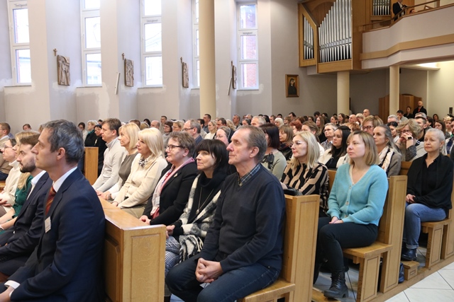 Uczestnicy konferencji modlili się podczas Mszy św. pod przewodnictwem biskupa kaliskiego Damiana Bryla, który w homilii podkreślał, że dzieci są darem Bożym. – Dzieci nie są własnością rodziców, są darem Pana Boga, są dane rodzicom, wychowawcom, aby się nimi opiekowali. Ważne, żebyśmy widzieli, że te różne miejsca wychowania dopełniają się. Rodzina, szkoła, Kościół – razem służymy, razem wspieramy się, razem doceniamy wartość innych środowisk. Razem chcemy wychowywać dobrych ludzi, dobrych uczniów Jezusa, ale chcemy widzieć, że u początków jest Pan Bóg, że dziecko jest Jego darem, że od samego Boga otrzymuje szczególną godność – zaznaczył kaznodzieja.