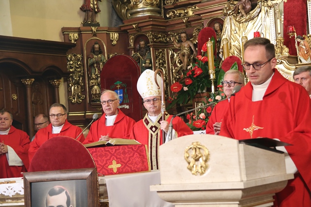 Zaznaczył, że na powołanie Pana Jezusa odpowiedział bł. Michał Kozal. – Wspominamy go w miejscu szczególnym, gdzie przyjął chrzest, gdzie otrzymał Bożą łaskę i uzdolnienie, żeby żyć Ewangelią. Ten dar, który błogosławiony Michał otrzymał tutaj w waszym kościele, potem mocno i radykalnie podjął. Gdy przypominamy sobie jego postać to najbardziej uderza to, że był on człowiekiem wielkiej wiary, człowiekiem, który podjął łaskę otrzymaną przy tej chrzcielnicy – powiedział celebrans.