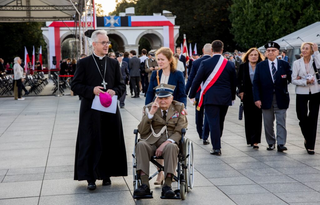 Ordynariusz wojskowy modlił się także za żołnierzy poległych na wszystkich frontach II wojny światowej oraz w intencji teraźniejszości i przyszłości Polski. – Boże Ojcze Nasz, błogosław Ojczyźnie. Dodaj nam wszystkim mocy i potrzebnych łask, abyśmy modlitwą i pracą wspierali Polskę i byli zdolni do wszelkich poświęceń. Pomóż nam kochać to, co ojczyste: nasze korzenie, historię, tradycję, język i krajobrazy. Naucz nas szacunku wobec siebie nawzajem – prosił. – Panie nieba i ziemi, ucz nas mądrego wykorzystywania wolności, solidarności i odpowiedzialności za wspólne dziedzictwo, aby serca Polaków biły w rytm Mazurka Dąbrowskiego. Odnawiaj nasze umysły i serca, by przepełniały je miłość, sprawiedliwość, uczciwość, ofiarność i troska o polską ziemię – dodał.