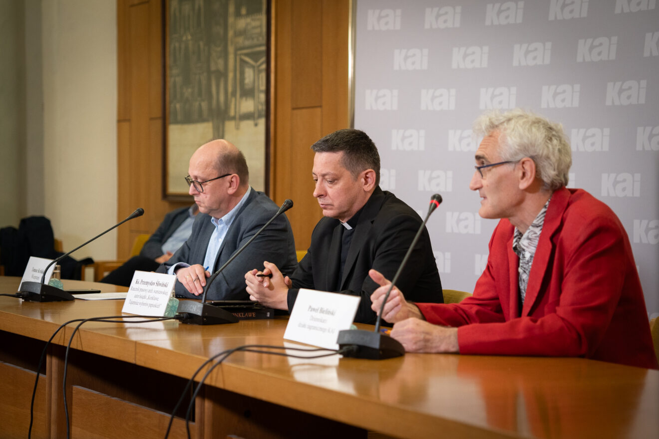 Fot. Hubert Szczypek / KAICo się teraz dzieje w Kościele? Jak będzie wyglądało rozpoczynające się za ponad tydzień konklawe? Jakiego papieża potrzebuje Kościół dziś i kto może nim zostać? – na te i inne pytania próbowali odpowiadać uczestnicy konferencji prasowej „Sekrety konklawe”, która odbyła się dziś w Sekretariacie KEP w Warszawie. W spotkaniu, które poprowadził red. Tomasz Królak z KAI uczestniczył ks. Przemysław Śliwiński, autor książki „Konklawe, tajemnice wyborów papieskich” oraz red. Paweł Bieliński, dziennikarz działu zagranicznego KAI.