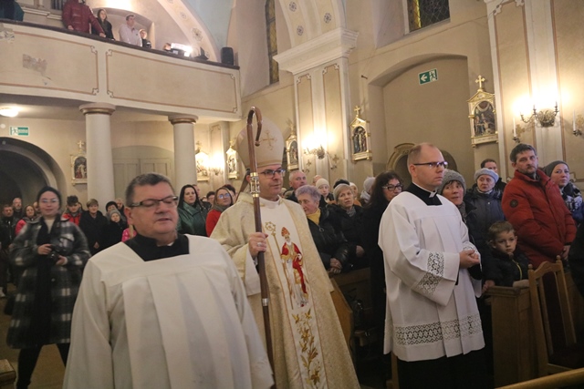 Witając biskupa i wiernych ks. kan. Przemysław Niezgódka podkreślił, że renowacja świątyni została przeprowadzona tylko i wyłącznie z ofiar parafian.