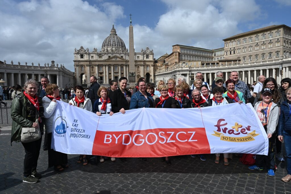 We Włoszech przebywa blisko trzysta osób, które dziękują za 20-lecie diecezji. Powołał ją w 2004 roku św. Jan Paweł II. – Z serca wam błogosławię i zawierzam was macierzyńskiej opiece Matki Bożej Pięknej Miłości – dodał papież, przywołując patronkę lokalnego Kościoła, jak i bł. bp. Michała Kozala, męczennika z Dachau. – Twierdził on, że: „Od przegranej orężnej bardziej przeraża upadek ducha u ludzi, a wątpiący staje się mimo woli sojusznikiem wroga” – mówił Ojciec Święty.