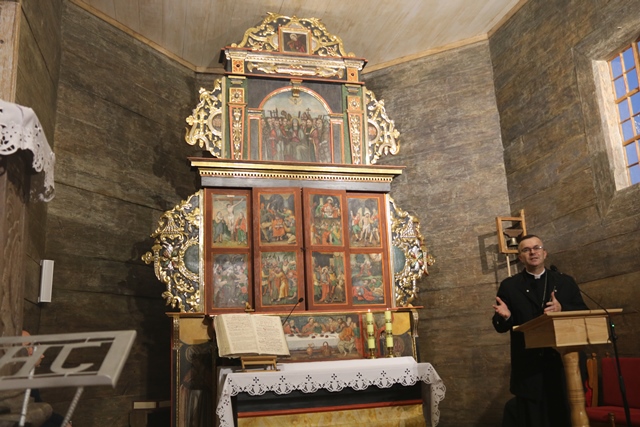 Akcentował, że wiara przodków, którzy tutaj modlili się wyrażała się także w pięknych dziełach. – Ta sztuka miała pomóc tym, którzy tutaj przychodzili bardziej otworzyć się na Pana Boga. Sztuka wypływa z wiary i ku wierze prowadzi. Chciałbym życzyć wszystkim, żeby nam i tym, którzy będą po nas te piękne dzieła pomogły otworzyć się na Pana Boga – zaznaczył hierarcha.