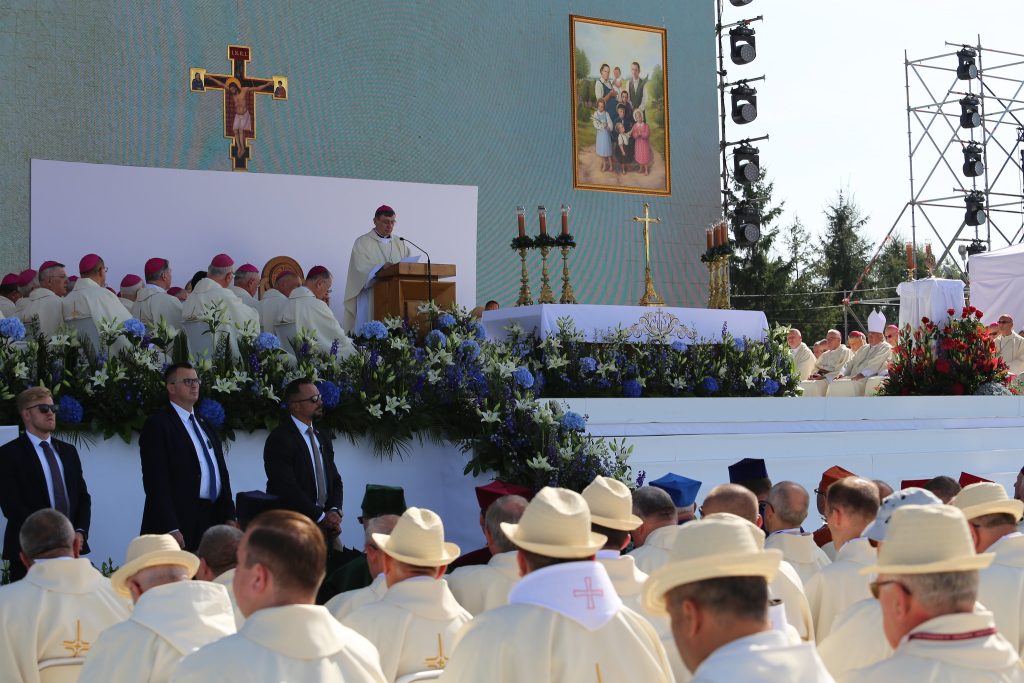 – Taka biała lilia pojawi się także na obrazie beatyfikacyjnym. Przy miejscu, na którym zostanie złożony relikwiarz rodziny Ulmów znajdują się kwiaty czerwone, odnoszące się do męczeństwa. Wraz z relikwiarzem zostanie przyniesiony bukiet kwiatów niebieskich, co jest nawiązaniem do obrazu beatyfikacyjnego, na którym najmłodsze dziecko trzyma taki właśnie kwiat – opisywał duchowny.