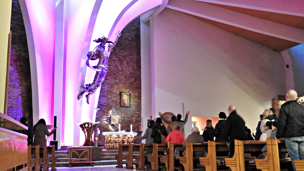 Fot. diecezja bielsko-żywieckaO tym, że Duch Święty przychodzi z różnymi darami oraz że Bóg Ojciec daje te dary bardzo chętnie tym, którzy proszą i są spragnieni – przypomniał Andrzej Solecki, jeden z inicjatorów kursu „Operacja Sykomora – misja dla niepokornych”. W ramach trwającego cyklu cotygodniowych wtorkowych spotkań 29 marca br. w kościele na os. Karpackim w Bielsku-Białej odbyła się modlitwa o wylanie Ducha Świętego z udziałem członków kilku wspólnot ewangelizacyjnych z diecezji.